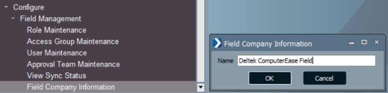 To view company information, click Configure > Field Management > Field Company Information.