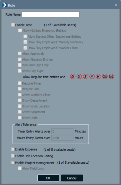 When you create a Role, the number of available "seats" on your license will be displayed for Time, Expense, and Project Management. If enabling a capability results in exceeding your available seats, you will be unable to save your changes.