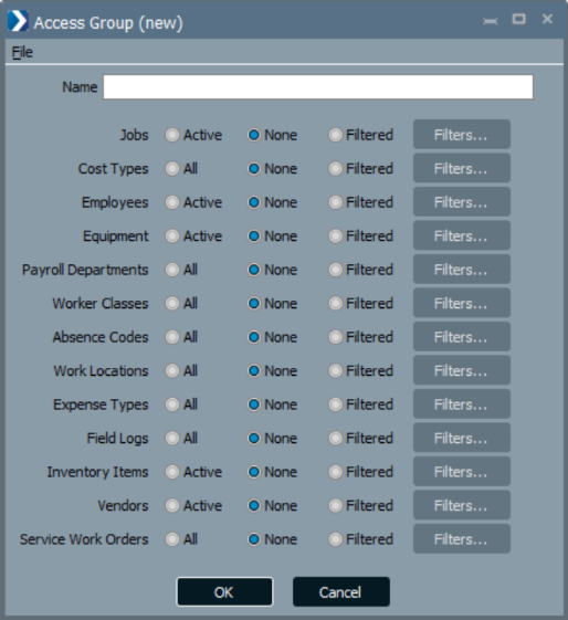 To create a new Access Group, click OK when (new) is displayed in the Group Name field.