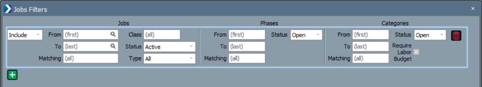 - Type: All, T&M, Non-T&M (jobs with phases and or categories)