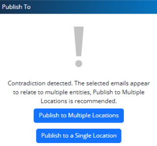Publish to Multiple Locations: assign or change the destination for each selected email row.